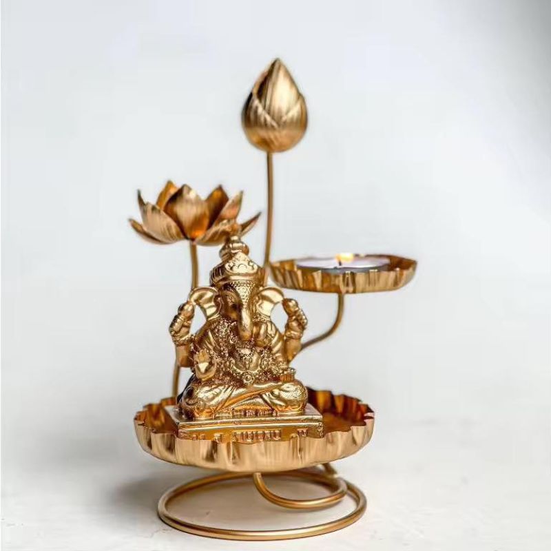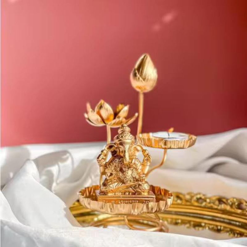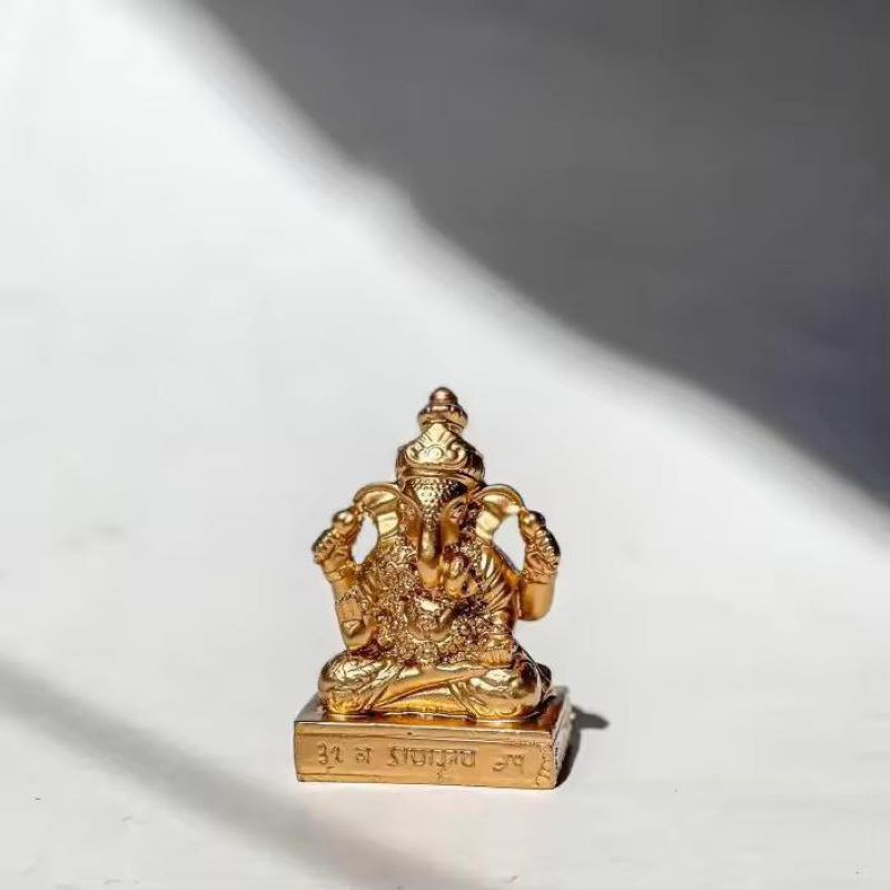 พระพิฆเนศ เรซิ่น สีทอง 3 นิ้ว ปางเศรษฐี ปางดักดูเศรษฐ ปางที่ร่ำรวยที่สุดในโลก รวมฐาน